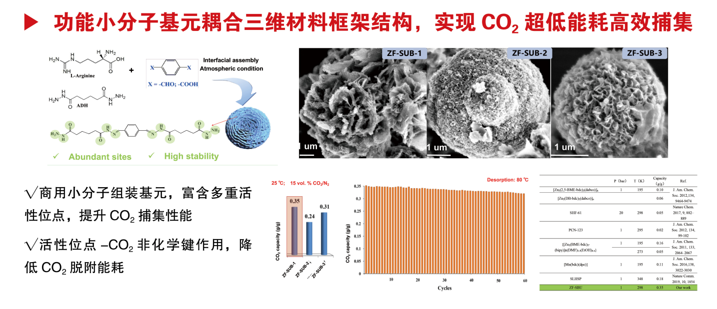 团队以“碳达峰碳中和”的国家重大需求为导向,充分结合湖北省磷资源优势,发展磷系功能化的绿碳材料,应用于CO2捕集与低质烃纯化技术、CO2光电热催化转化技术等方面的研究工作,原创新提出高效碳捕集与转化材料设计新思路,从烟道气、沼气等工业尾气高效捕集CO2并将其在温和条件下催化转化生成生物可降解聚酯、阻燃聚氨酯等含氧化学品以及烯烃、高碳醇等碳氢化合物,开发形成CO2基聚酯温和合成与改性成型一体化技术,科学合理地实现CO2源头控制与转化全过程多元平衡。近3年,团队共承担研发课题10余项,累计进账近600余万元,获侯德榜化工科学技术青年奖,民恩泽能源化工青年奖等,在AIChE. J、Adv. Sci.、Appl. Catal. B-Environ.、Chem. Soc. Rev.发表高水平SCI学术论文30余篇,申报/授权美国专利2项、国家发明专利10余项。团队原创性开发CO2基生物可降解聚酯温和合成改性成型一体化和CO2基阻燃型非异腈酸酯聚氨酯合成工艺,产品可广泛应用于可降解塑料袋、餐具、农用地膜、建筑保温层等领域,目前正与企业开展中试示范。研究方向如下: